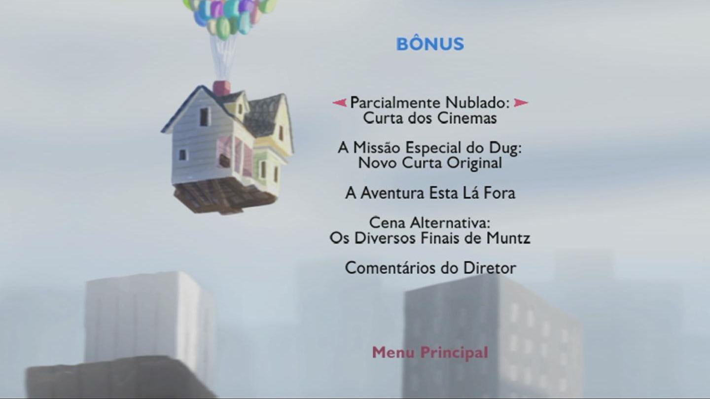 Já o Blu-ray, além de trazer no disco 01, todos os extras presente no DVD simples, apresenta mais extras exclusivos no segundo disco, que são: 07 mini-documentários falando do Carl, dos cachorros, do Russel, do Kelvin, da casa, dos balões e um outro não apresentada pela Disney durante o evento. Cada documentário apresenta uma média de 5 a 8 minutos de duração, sendo uma boa pedida para os fãs de animação. Outro extra muito legal desse disco é uma nova cena alternativa de 9 minutos, na qual vemos um começo alternativa, dessa vez Ellie e Carl aparecem e vemos um jeito diferente dela demonstrar seu amor por ele. Além disso, temos “Up Promo Montage” (06:00), um game com perguntas sobre países, continentes e locações de cindades, na qual o vencedor ganhará bottons e último extra é o “Worldwide Trailers“, na qual podemos ver dois trailers do animado com legenda em português.