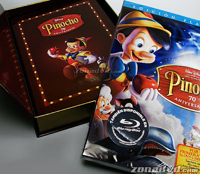 Após revelarmos na última sexta, que a Disney Espanha lançara um gift set especial da edição de 70º Aniversário de “Pinóquio“, o site Zona DVD apresentou uma vasta galeria com 21 imagens do gift set que apresenta o DVD duplo mais um livro com informações e ilustrações do animado, que chega as lojas no próximo dia 11 de Março. Vale citar que no encarte do DVD apresenta um erro anunciando que “Fantasia” chegará as lojas na primavera de 2009, sendo que na verdade o lançamento está confirmado para a primavera de 2010.