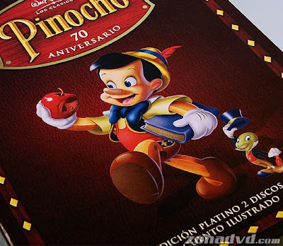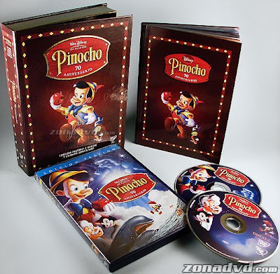 Após revelarmos na última sexta, que a Disney Espanha lançara um gift set especial da edição de 70º Aniversário de “Pinóquio“, o site Zona DVD apresentou uma vasta galeria com 21 imagens do gift set que apresenta o DVD duplo mais um livro com informações e ilustrações do animado, que chega as lojas no próximo dia 11 de Março. Vale citar que no encarte do DVD apresenta um erro anunciando que “Fantasia” chegará as lojas na primavera de 2009, sendo que na verdade o lançamento está confirmado para a primavera de 2010.