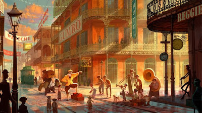 # Vivendo no pantano, o crocodilo Louis, será um grande fã de jazz e irá tocar uma trombeta, seguindo os barcos do rio pela música. Se torna amigo dos sapos, já que sua música acaba não sendo apreciada pelos amigos répteis.