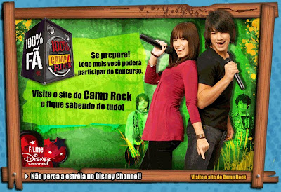 O canal pago Disney Channel começa essa semana a promoção “100% Fã 100% Camp Rock”. Se você é fã dos garotos do Jonas Brothers ou da atriz e cantora Demi Lovato, fique de olho na programação do canal e no site oficial da promoção, pois parece que a Disney vai levar um fã para conhecer os Jonas Brothers e Demi Lovato. Em breve mais novidades sobre a promoção.