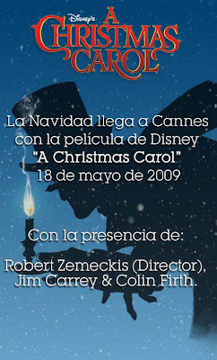“A Christmas Carol da Disney“, o clássico conto de Dickens é revisitado pelo cineasta vencedor do Oscar®, Robert Zemeckis, o animado está agendado para chegar nos cinemas de todo o Brasil no dia 06 de novembro de 2009, com cópias em Disney Digital 3-D™. De acordo com um anuncio no site ComingSoon, os estúdios Disney informou que vai exibir uma prévia especial em 3D do longa no festival de Cannes desse ano, que acontece no dia 18 de maio de 2009. Abaixo seguem alguns anúncios.