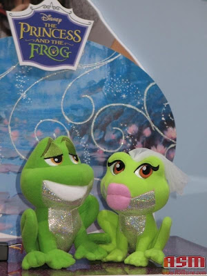 As fotos foram descobertas pelo amigo David Santos, do Animations Fórum. Nelas podemos ver a boneca de Tiana (estilo Barbie), que virá acompanhada com o príncipe Naveen, transformado em sapo, em sua mão. Outro produto apresentado foram o casal de sapos de pelúcia, que devem agradar em cheio ao público mais infantil.