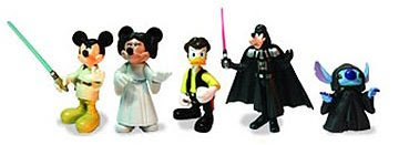 Isso mesmo, a Disney está preparando uma nova série de bonecos que trazem os clássicos personagens Disney e da franquia Muppets vestidos como personagens da saga de George Lucas. Tem Mickey Skywalker, Donald Solo, Pateta Vader, Gonzo Vader, Fozziebacca, Princesa Piggy, Caco Skywalker, entre muitos outros. O lançamento porém é exclusivo para as lojas dos parques temáticos. Mas vale lembrar, que o bom e velho site de compras o eBay, deve trazer em breve os produtos para os fãs com preços salgados.