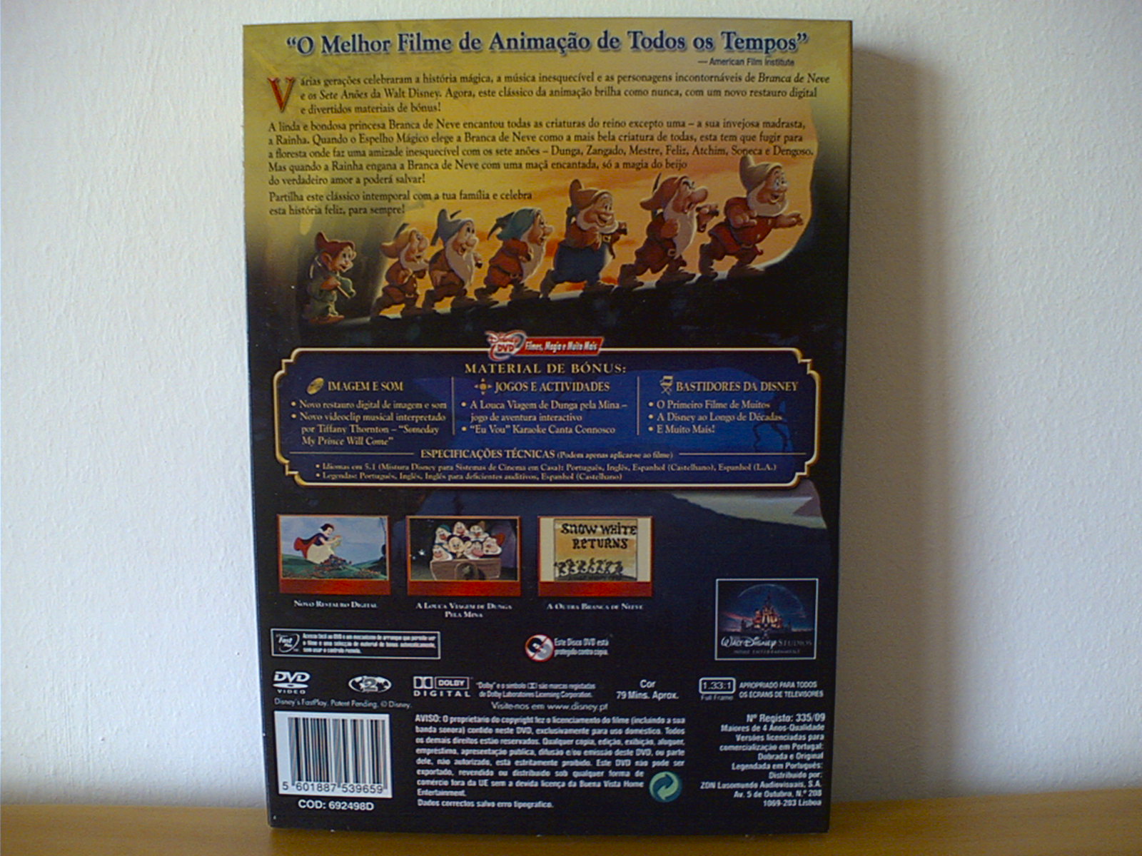 Após 7 anos fora do mercado, “Branca de Neve e os Sete Anões” já se encontra a venda em DVD duplo, DVD + Camiseta e DVD + Trilha Sonora e em Blu-ray. Os inesquecíveis personagens do primeiro longa-metragem da história da animação estão de volta em grande estilo: numa versão restaurada digitalmente e repleta de bônus exclusivos. A partir de outubro, estará disponível o Combo composto pelo Blu-Ray duplo e o DVD, por um preço especial de R$ 99,90. Esta é a primeira vez que a Walt Disney Studios Home Entertainment lança um produto no formato Blu-Ray Combo no Brasil, com preço reduzido, e esse é ainda o primeiro Blu-Ray com luva especial.