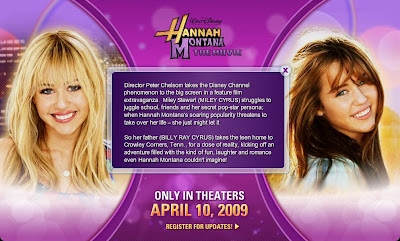 A Disney dos Estados Unidos acaba de inaugurar o site oficial de “Hannah Montana: O Filme“, o mais novo longa-metragem do estúdio, baseado no seriado de sucesso do Disney Channel. O teaser site não apresenta grandes novidades, além da sinopse oficial e o trailer do longa-metragem no idioma original. Até o lançamento, mais novidades devem ser apresentadas em um site especial.