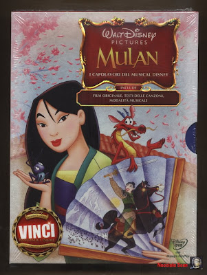 Um fã Disney da Itália soltou recentemente na internet, algumas fotos da nova versão “Musical Masterpiece Edition” do clássico “Mulan“. O DVD chegou recentemente na Itália em uma embalagem digipack trazendo uma arte batida e simples demais para a capa e os menus animados. Se compararmos a versão Musical, que é simples, com a edição dupla de Colecionador lançada em 2004, a atual versão fica devendo e muito tanto em beleza, quanto em conteúdo. Tudo indica que o Brasil deverá receber tal versão no primeiro semestre de 2009, se a Disney não cancelar o lançamento do DVD.