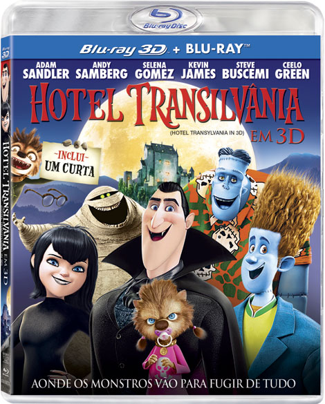 Sucesso de público também nos cinemas do Brasil, Hotel Transilvânia (Hotel Transylvania) chegará as lojas em DVD, BD e BD 3D no dia 06 de fevereiro de 2013, pela Fox–Sony Home Entertainment.Além do filme, o DVD traz extras como Comentários em Áudio, videoclipe da canção “Problem (Monster Remix)”, interpretada por Becky G Featuring will.i.am, Behind the Scenes of “Problem (Monster Remix)”, DVD – ROM link to Hotel T website e um curta inédito. O BD trará os mesmos extras do DVD, além de “Meet the Staff and Guests: Voicing Hotel Transylvania”, “Making the Hotel” e 3 Progression reels.
