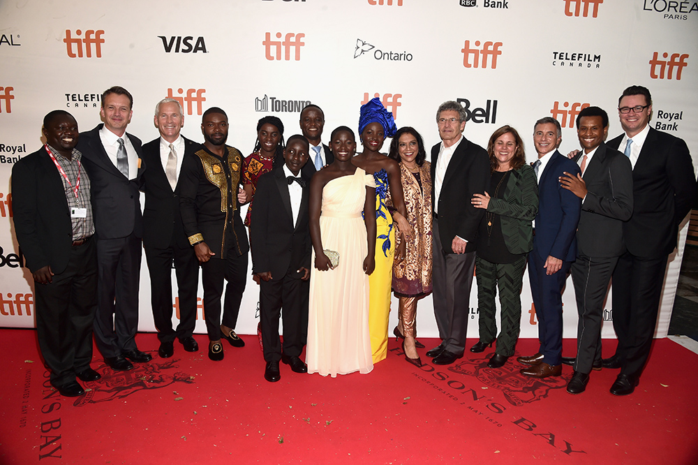TORONTO, ON – SEPTEMBER 10: (L-R) Mark Mugwana, President of Walt Disney Studios Motion Picture Production, Sean Bailey, producer John Carls, actor David Oyelowo, Ugandan national chess champion Phiona Mutesi, actor Martin Kabanza, Chess Coach and Director of Sports Outreach in Uganda, Robert Katende, actors Madina Nalwanga, Lupita Nyong’o, director Mira Nair, Chairman, The Walt Disney Studios, Alan Horn, producer Lydia Pilcher, President, Marketing, The Walt Disney Studios, Ricky Strauss, Executive Vice President of Production, The Walt Disney Studios, Tendo Nagenda and EVP, Distribution at The Walt Disney Company, Dave Hollis arrive at the world premiere of Disney’s “Queen of Katwe” at Roy Thompson Hall as part of the 2016 Toronto Film Festival where the cast, filmmakers and real life stars received a standing ovation. The film, starring David Oyelowo, Oscar winner Lupita Nyong’o and newcomer Madina Nalwanga, is directed by Mira Nair and opens in U.S. Theaters September 23, 2017. (Photo by Alberto E. Rodriguez/Getty Images for Disney ) *** Local Caption *** Mark Mugwana; Sean Bailey; John Carls; David Oyelowo; Phiona Mutesi; Martin Kabanza; Robert Katende; Madina Nalwanga; Lupita Nyong’o; Mira Nair; Alan Horn; Lydia Pilcher; Ricky Strauss; Tendo Nagenda; Dave Hollis