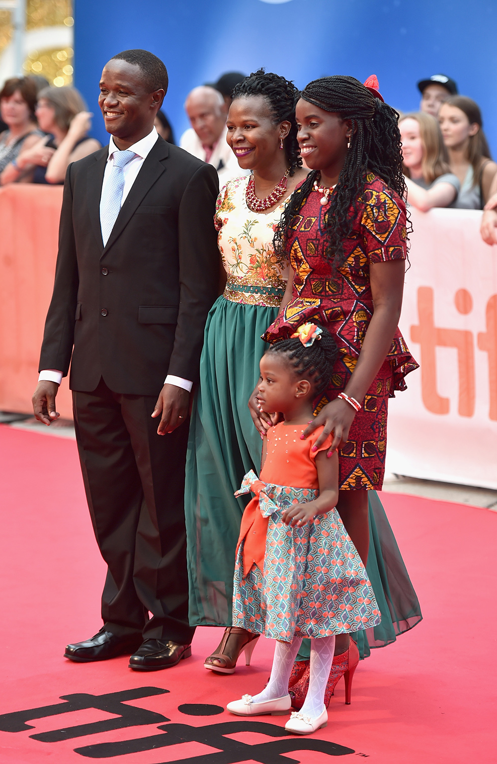 TORONTO, ON – SEPTEMBER 10: (L-R) Chess Coach and Director of Sports Outreach in Uganda, Robert Katende, Sarah Katende, Ugandan national chess champion Phiona Mutesi and Hope Katende arrive at the world premiere of Disney’s “Queen of Katwe” at Roy Thompson Hall as part of the 2016 Toronto Film Festival where the cast, filmmakers and real life stars received a standing ovation. The film, starring David Oyelowo, Oscar winner Lupita Nyong’o and newcomer Madina Nalwanga, is directed by Mira Nair and opens in U.S. Theaters September 23, 2017. (Photo by Alberto E. Rodriguez/Getty Images for Disney ) *** Local Caption *** Robert Katende; Phiona Mutesi; Hope Katende; Sarah Katende
